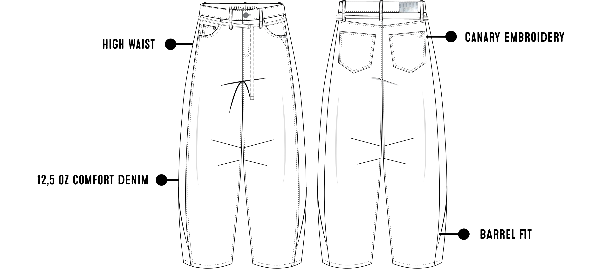 Meet our new fit: Robyn. De Robyn Barrel Jeans is een barrel fit voor vrouwen met een krachtig, modern silhouet en utility-invloeden. De middelhoge tot hoge taille valt ruim op heup en bovenbeen en loopt rond en taps toe richting de enkel voor het kenmerkende barrel shape-effect.