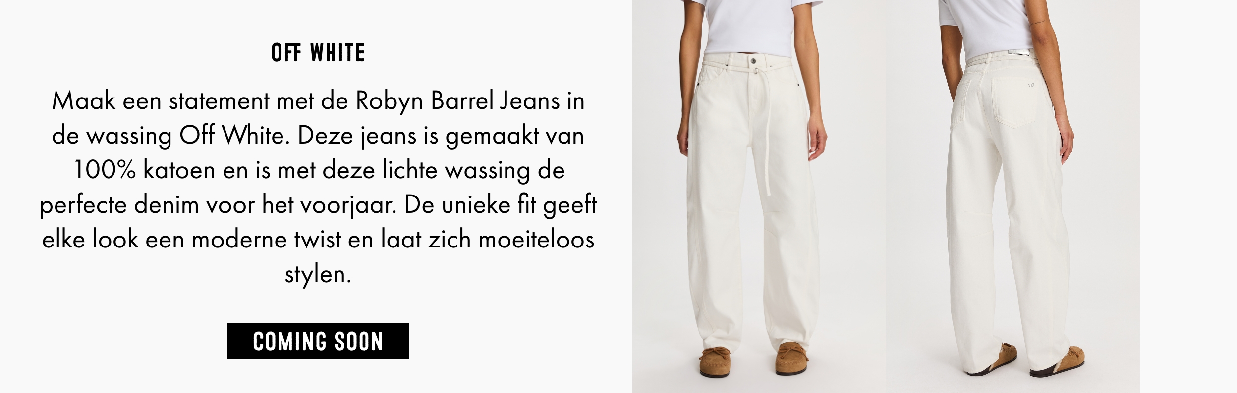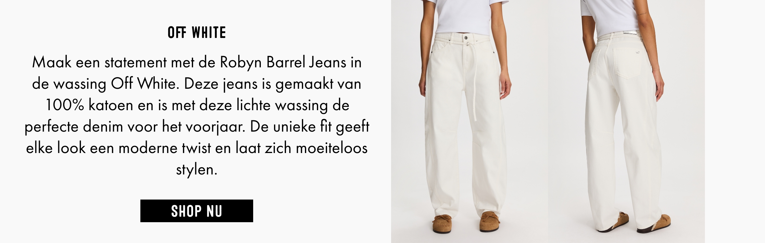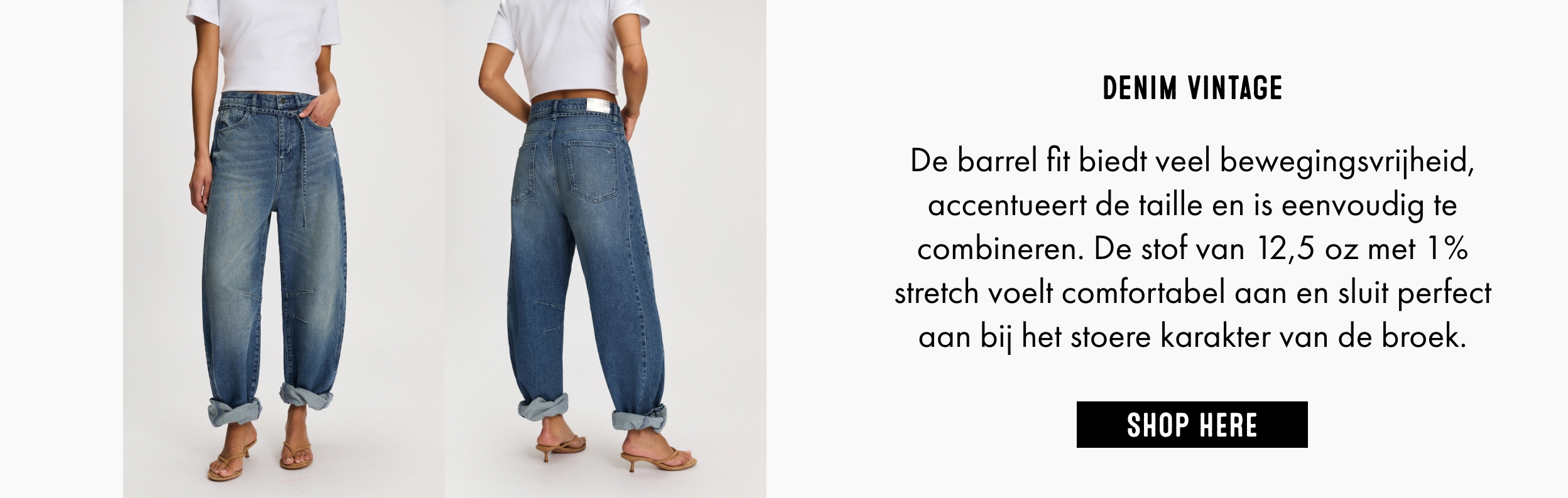De Robyn Barrel Jeans is daarnaast verrassend veelzijdig om te stylen. Combineer de jeans met een strakke top, een kort jasje of een blouse die je deels in de broek stopt om de taille te benadrukken en balans te creëren in het silhouet. Draag er sneakers onder voor een casual look, of kies voor enkellaarsjes of hakken wanneer je de outfit een meer geklede uitstraling wilt geven. Maak de look af met minimalistische accessoires zodat de opvallende pasvorm van de jeans echt tot zijn recht komt.