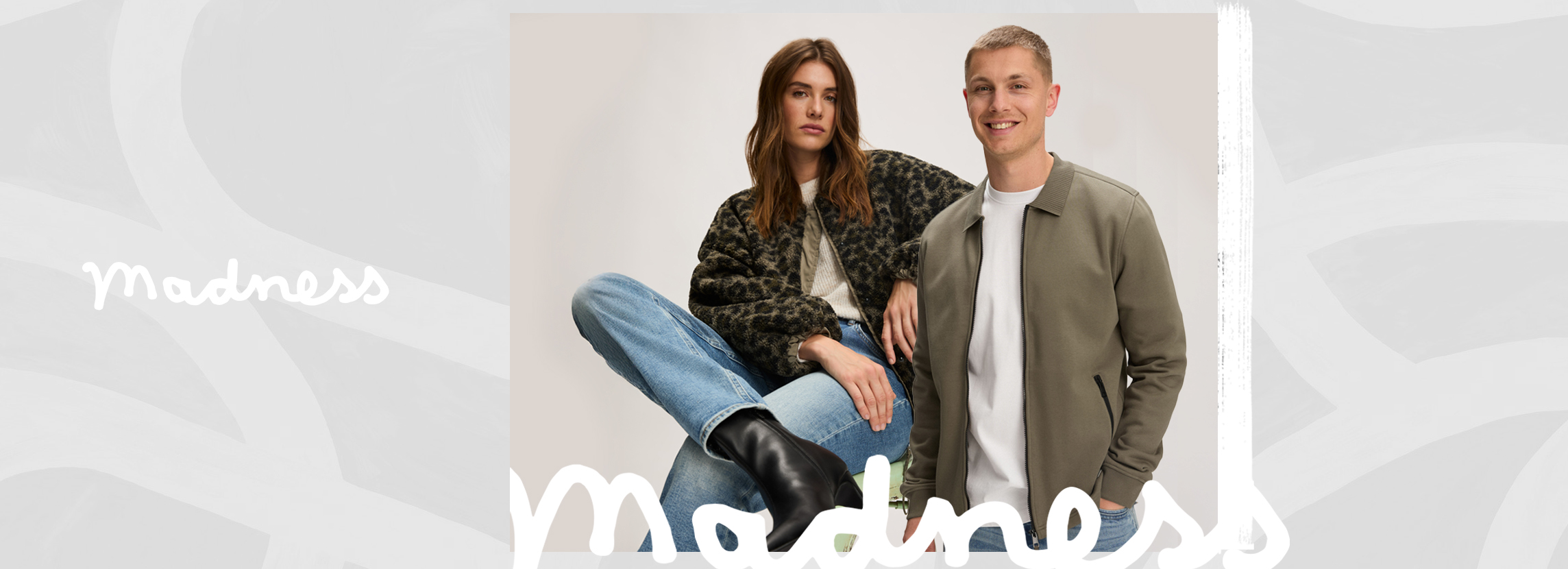 Madness is er voor de modeliefhebber die durft. Met zorgvuldig samengestelde collecties en verrassende items voor dames en heren biedt dit merk ieder wat wils. Madness besteedt veel aandacht aan trendy details, kwalitatieve materialen en een mooie fit. Dit maakt Madness kleding uniek en toch voor iedereen. Ben je op zoek naar betaalbare musthaves van dit moment? Kies dan voor het merk Madness.